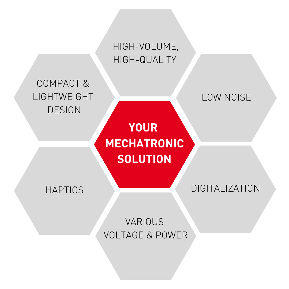 Our mechatronic solutions enhance the user experience of your customers. Our solid technological skills in electromagnetism, micromechanics, electronics and digital contribute to the creation of movement and sensations of movement (haptics), capable of bringing unique value to your application.